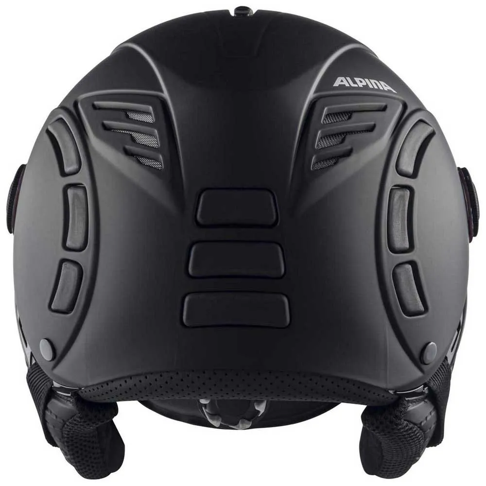 See the full panorama of the mountains and keep all the other skiers and snowboarders in sight on the piste – the visor on the Jump 2.0 QVMM guarantees this in all weather. Besides offering protection from air streams and enough space to wear optical correction as well, it’s also contrast-enhancing and self-tinting thanks to the high-quality QuattroVarioflex technology. This means that the visor automatically adapts to the current weather. The photochromatic lens reacts to visible light. When exposed to radiation, chemical elements open up and create a flat, darkening effect. When the light intensity decreases, the chemical elements close and the lens becomes brighter again. This process takes seconds. The visor also provides 100% protection from UV-A, UV-B and UV-C rays. Unique design, high-quality features and processing, reliable fit: The Jump 2.0 is one of Alpina’s premium visor helmets. Its structure is made of EPS, which allows ventilation to be clearly felt. Air is actively directed to the inside, guided along the head there and transported back out through openings in the rear. This prevents heat from building up and guarantees an optimum climate. The Run System, which allows the helmet to be adjusted to the head’s individual shape, is combined with a neck warmer. This keeps the neck comfortably warm even on cold, windy days of skiing and also makes it more comfortable to wear. No feature is left out of the Jump 2.0 QVMM – so winter athletes can fully enjoy their day on the piste.